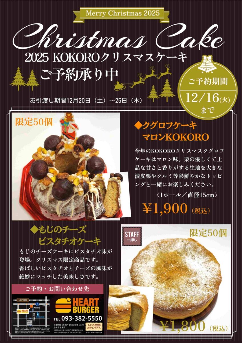 さてHEART BURGERでは今年も2025クリスマスフェアと題して限定のクグロフケーキ、チーズケーキ、チキンレッグのご予約販売を開始します。