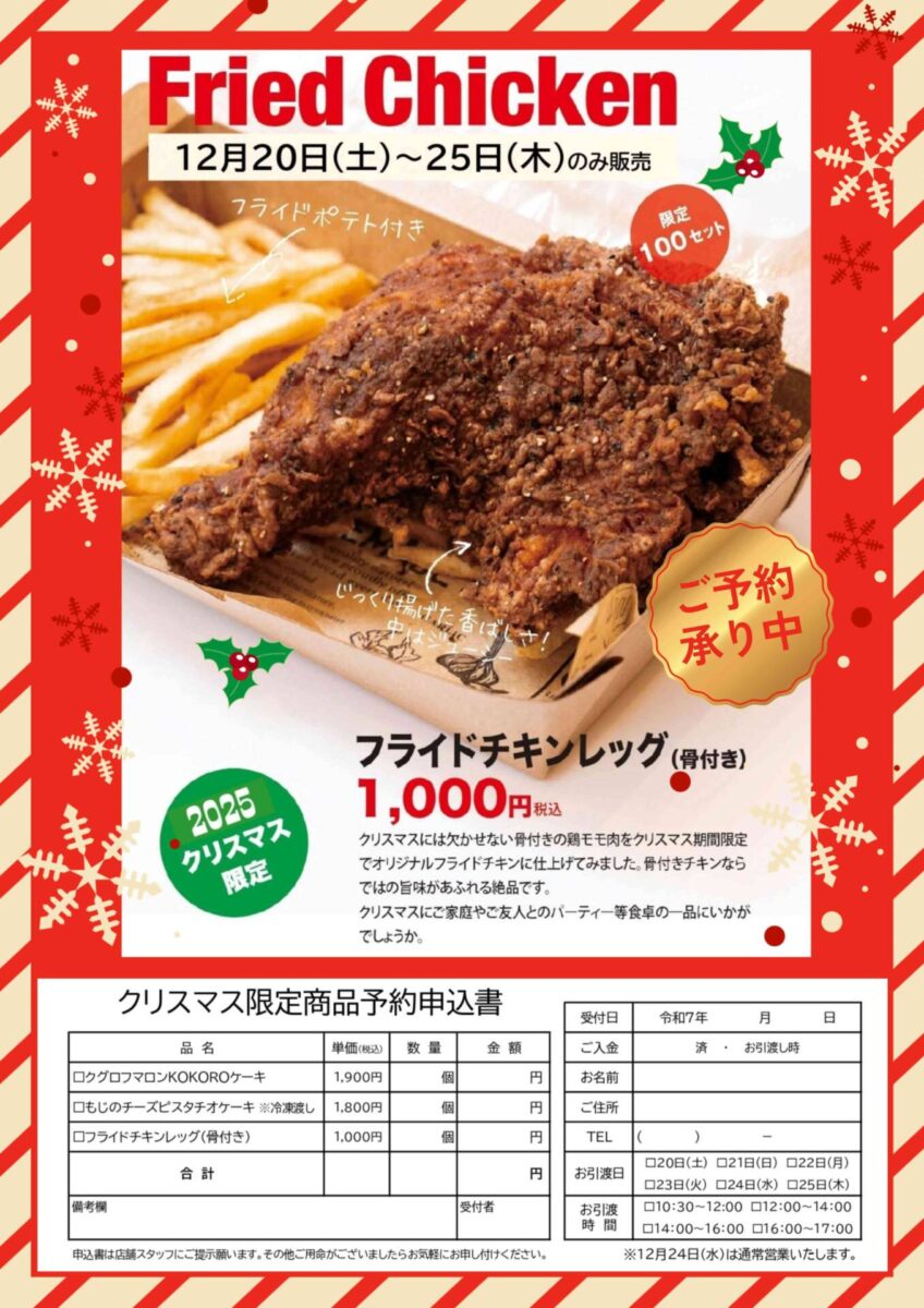 クリスマスケーキ&フライドチキンレッグご予約開始のご案内